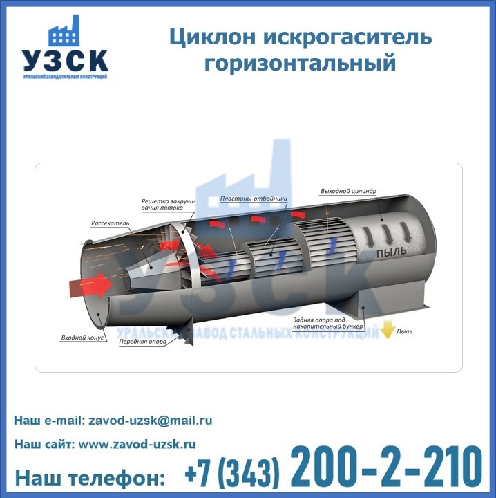 Горизонтальные циклоны-искрогасители ЦГ поставляются в Иркутске в сборке или же транспортными единицами для последующей сборки, если предназначены для работы с большими объемами.