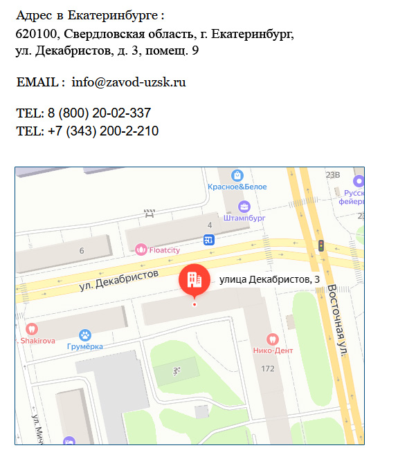 Наши контакты Информационно-сервисное представительствоАдрес: 664002, Россия, Иркутск, Таманская улица, 15E-Mail: irkutsk@zavod-uzsk.ruТелефон: Звонок по России бесплатный!Время работы:ПН — 09.00 — 20.00ВТ — 09.00 — 20.00СР — 09.00 — 20.00ЧТ — 09.00 — 20.00ПТ — 09.00 — 18.00СБ — выходнойВС — выходной